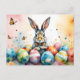 Cartão Postal Cute Easter Bunny with Colorful Painted Eggs