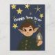 Cartão Postal Cute Elf Watcher Starry Night Happy New Year Postc