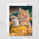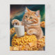 Cartão Postal Cute Ginger Cat With Milk in Space