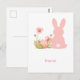Cartão Postal Cute Pink Easter Bunny with Spring Flowers