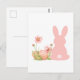 Cartão Postal Cute Pink Easter Bunny with Spring Flowers
