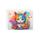niedliche Katze in Regenbogenfarben mit Blumen in der Art eines Wasserfarben Bildes.