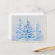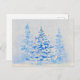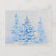 Uma pintura de aquarela, luzes de Natal nos pinheiros de neve. Pintura original impressa em cartão-postal, trabalho de arte, por Kristina Anderson
