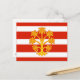 Cartão postal com desenho com uma bandeira do condado histórico de Westmorland, na Inglaterra, Grã-Bretanha; bandeira listrada branca e vermelha com árvore de maçã heráldica dourada no centro