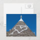 Cartão-postal de um encerramento do telhado do azulejo de pedra de uma tradicional casa de trulli em Alberobello, Apúlia, na Itália.