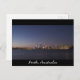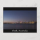 Cartão postal com uma foto do horizonte da cidade de Perth à noite, sobre o rio Swan, no oeste da Austrália.