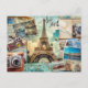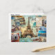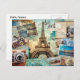O cartão postal é mostrado com um impressão de colagem das vistas de Paris, França, com câmeras vintage. Personalize este item, adicione seu próprio texto ou comprar como está. Imagem licenciada
