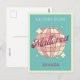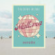 Mallorca España Isla de España, Espanha, Retro Vintage Design com uma bola de disco a rosa e matizes de pêssego de damasco. Este belo cartão postal é um cartão de boas-vindas perfeito para residentes em Maiorca, visitantes, turistas ou fãs.