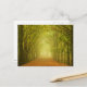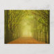 Cartão postal com luz no final de um túnel por faia ao longo de uma pista pela floresta.