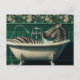 IA gerou arte de uma bela zebra encharcada numa banheira de pé-de-garra com papel de parede floral verde ao fundo