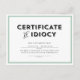 Se você fez algo errado e precisa pedir desculpas, faça isso com um cartão postal oficial do Certificado de Idiocy. Espaço para personalizar na frente com seu nome e assinatura e muito espaço nas costas para um pedido de desculpas mais demorado. Disponível em outros formatos e cores.