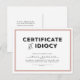 Se você fez algo que não deveria se desculpar com este cartão postal de certificado de idiotice divertido. Espaço na frente para personalizar com seu nome e assinatura e sala ao contrário para um pedido de desculpas mais longo. Preto, branco e rosa.