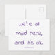 Um simples cartão postal com uma linha amada da minha música original, "Cheshire Kitten" - ouça e leia o resto da letra aqui: https://music.sjtucker.com/track/cheshire-kitten-were-all-mad-here