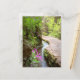 Um cartão postal cénico com a minha própria fotografia original da caminhada da Levada das 25 Fontes na Madeira, Portugal. Este caminho florestal exuberante é uma das rotas de caminhada mais bonitas da ilha e torna-se num cartão postal perfeito para memórias de viagem, férias, presentes ou para enviar cumprimentos a amigos. Ideal para os amantes da Madeira, caminhantes e entusiastas da natureza.