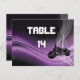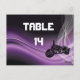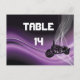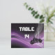 Cartão postal da mesa de casamento de motociclista roxa, com uma motocicleta em um fundo roxo e preto de abstrato e uma malha branca. Alguns elementos são cortesia de Clipartandfonts.com.