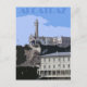 Um impressão do estilo abstrato poster da ilha que contém a famosa prisão Alcatraz. Pintura digital criada por Second Glance Digital Art. Inspirada em uma foto tirada por LeAnn Lunzer.