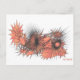 Cartão postal da senhora abstrata rezando Este é um toque de amor. Este cartão postal está cheio de graça com as cores laranja e preto com formas abstratas como engrenagens na frente do cartão postal.
