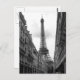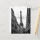 Cartão postal com uma foto de uma rua parisiense e a Torre Eiffel.