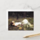Cartão postal John William Waterhouse Ophelia. Pintura a óleo na canvas 1889. O pintor inglês John Waterhouse pintou múltiplas representações da Ofelia de Hamlet ao longo da sua carreira. Esta versão de 1889, sua versão mais antiga, talvez seja a mais impressionante e dinâmica dele. Ophelia fica num campo entre flores silvestres brancas e amarelas e grama alta. Ela veste um vestido branco simples, mas elegante enquanto passa a mão através do cabelo castanho escuro. Um presente de excelente para fãs de J.W. Waterhouse, Shakespeare, pintura literária, Pré-Raphaelites e arte romântica inglesa.