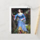 Cartão postal John William Waterhouse Ophelia. Pintura a óleo na canvas desde 1910. O artista inglês John Waterhouse frequentemente desenhava temas literários, e Shakespeare era uma de suas maiores fontes de inspiração. Waterhouse dedicou várias pinturas à heroína condenada de Hamlet, Ophelia. Esta pintura em particular mostra a garota vestindo um vestido azul com capas vermelhas e bordado de ouro. O cabelo de Ophelia é auburn e adornado com flores. Ela também carregar flores em sua saia enquanto caminha fatalmente para o riacho em que vai morrer. Um presente de excelente para fãs de J.W. Waterhouse, Shakespeare, Ophelia, os Pré-Raphaelites e a pintura romântica inglesa.