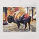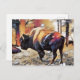 No estilo de arte dadaismo, uma imagem de uma praça bisão numa área florestal. As cores são devidas à queda por trás do Bison.