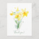 Uma pintura aquosa de um buquê de daffodil e palavras "Obrigado!" você pode personalizar o texto no cartão.