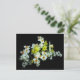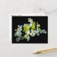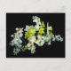 Quando os narcisos florescem, sabemos que a primavera chegou a toda a sua glória! Este cartão-postal é decorado com um arranjo requintado de narciso amarelo pálido, branco e laranja e lilases brancas, desencadeado por um fundo preto puro.