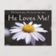 Daisy com um doce ditado, Ele me ama, ele me ama não, ele me ama! no cartão postal e sua própria saudação pode ser colocada no lado oposto. Pode ser usado para noivado, casamento ou só porque.