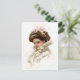 A adorável senhora morena com arco de cabelo cor-de-rosa e capa frágil é o foco desses presentes de arte e roupa.