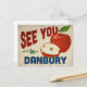 Um cartão postal encantador da viagens vintage Danbury Connecticut com uma adorável maçã vermelha, juntamente com um texto divertido no estilo retrô que diz, "Até em Danbury"