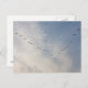 Cartão-postal com uma foto de gansos voando em v, formando-se em belos céus. Personalizável.