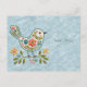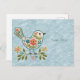 Lindo cartão postal de bordado de folhas verdes florais de passarinho