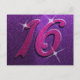 Cartão postal de 16 de aniversário, cor-de-rosa e