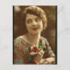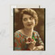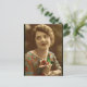 Uma jovem adorável aprecia este cartão postal de reprodução vintage
