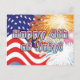 Cartão postal de 4 de julho com bandeira e fogos de artifício