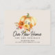 Feliz Dia de Ação de Graças. Anuncie seu novo endereço para familiares e amigos com este cartão postal moderno com flores em tons de burgundy, azul-marinho e rosa.