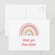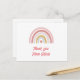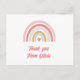 cartão postal de agradecimento arco-íris pastel em rosa pastel para aniversário de meninas.