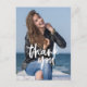 Cartão postal de agradecimento de formatura com letra branca em negrito.