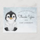 Agradeça aos seus convidados por celebrar a futura mamãe! Este cartão postal de agradecimento apresenta um pinguim em aquarela para combinar com o nosso convite para chá de bebê por correio. Personalize com suas informações ou clique em "Clique para personalizar ainda mais" para editar estilos de fonte, tamanho e cores.