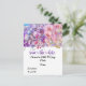 Celebre seu próximo aniversário com estilo com este Cartão Postal Save the Date de Flor de Orquídea. Com delicadas orquídeas pintadas à mão em tons suaves de lavanda, rosa e branco, este design elegante captura a beleza e a graça da natureza, definindo o tom perfeito para o seu dia especial. Quer você esteja planejando uma reunião íntima ou uma grande celebração, este cartão postal floral informará aos seus convidados que marquem suas agendas para a próxima ocasião. O design de orquídea atemporal lhe dá um toque sofisticado e luxuoso, tornando-o um souvenir inesquecível para seus convidados.