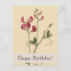 Flores botânicas vintage estão neste cartão postal de feliz aniversário.