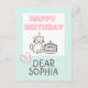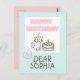 É o cartão postal do gato azul celeste e rosa de aniversário.