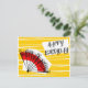 Desenho caprichoso feito em estilo retrô com um souvenir de leque de renda de uma viagem à Espanha sobre um fundo amarelo dourado e branco. Um design personalizável em preto, branco, vermelho e amarelo dourado para você personalizar com seu próprio texto, imagens e ideias. Uma imagem de arte digital original.
