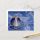 Anjo parado em uma concha de moluscos flutuando na água do oceano.