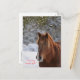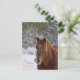 Um cavalo parado na neve debaixo da maleta. Šťastný nový rok - Feliz ano novo!