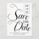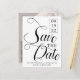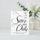 A Renovação de Vow em preto e branco elegante salva o cartão-postal de fotos de data. Design de recursos de ''salvar a data'' em um script de caligrafia moderno em cores pretas e douradas em fundo branco. Adicione sua mensagem, foto e mais detalhes no verso