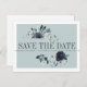 Projetado para coordenar com nossa coleção de casamentos florais de "Algo Azul", cercado por delicadas flores pintadas de azul, branco e marfim e penas esta design é atraente e muito bonita. Moderno e simples, salve o cartão-postal da data aparece no centro entre a folhagem e um cartão-postal da modelo está no verso. Todos os estilos de texto, cores, tamanhos também podem ser modificados para ajustado de suas necessidades Para obter ajuda ou solicitação personalizada (sem encargos), entre em contato conosco em citronelladesign@gmail.com ou visite nossa loja