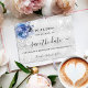 Cartão Postal De Anúncio Aniversário flores azuis prateadas em script save