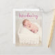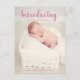 "Apresentando" em fonte de letra manuscrita elegante, texto de exibição rosa. A foto do bebê é a estrela neste cartão de anúncio de nascimento. Personalize substituindo a foto pela foto do seu novo bebê e insira seu texto personalizado.