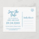 Este cartão postal de aquarela areia e mar para salvar a data é perfeito para um casamento na praia. O design abstrato apresenta textura de aquarela amarela e azul que é organizada para trazer vibrações do oceano à beira-mar.